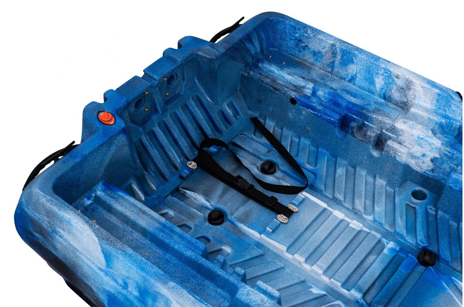 The new Galaxy Strike is the perfect choice for those seeking a stable, easy-to-transport, and versatile kayak for outdoor adventures. Equipped with easy lock straps to secure a rear storage box for a large battery and powering an outboard motor, the Strike promises to take you on an exciting ride while comfortably scouting the surroundings in all directions from a stable platform. Here are the top five features: