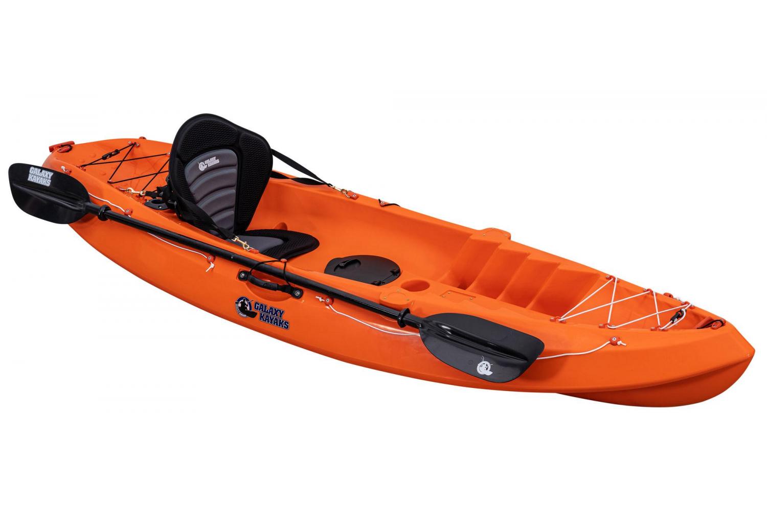 This kayak comes fully equipped with a seat, paddle, and a new durable lifeline, making it ready for your next adventure. The Galaxy HV Series™ features three lifelines in Orange, White, and Black, giving you the choice to select the perfect color to match your kayaking style. The rear and front storage area also comes with three coloured bungees, making it easy to secure your gear and transport it with you on the kayak.