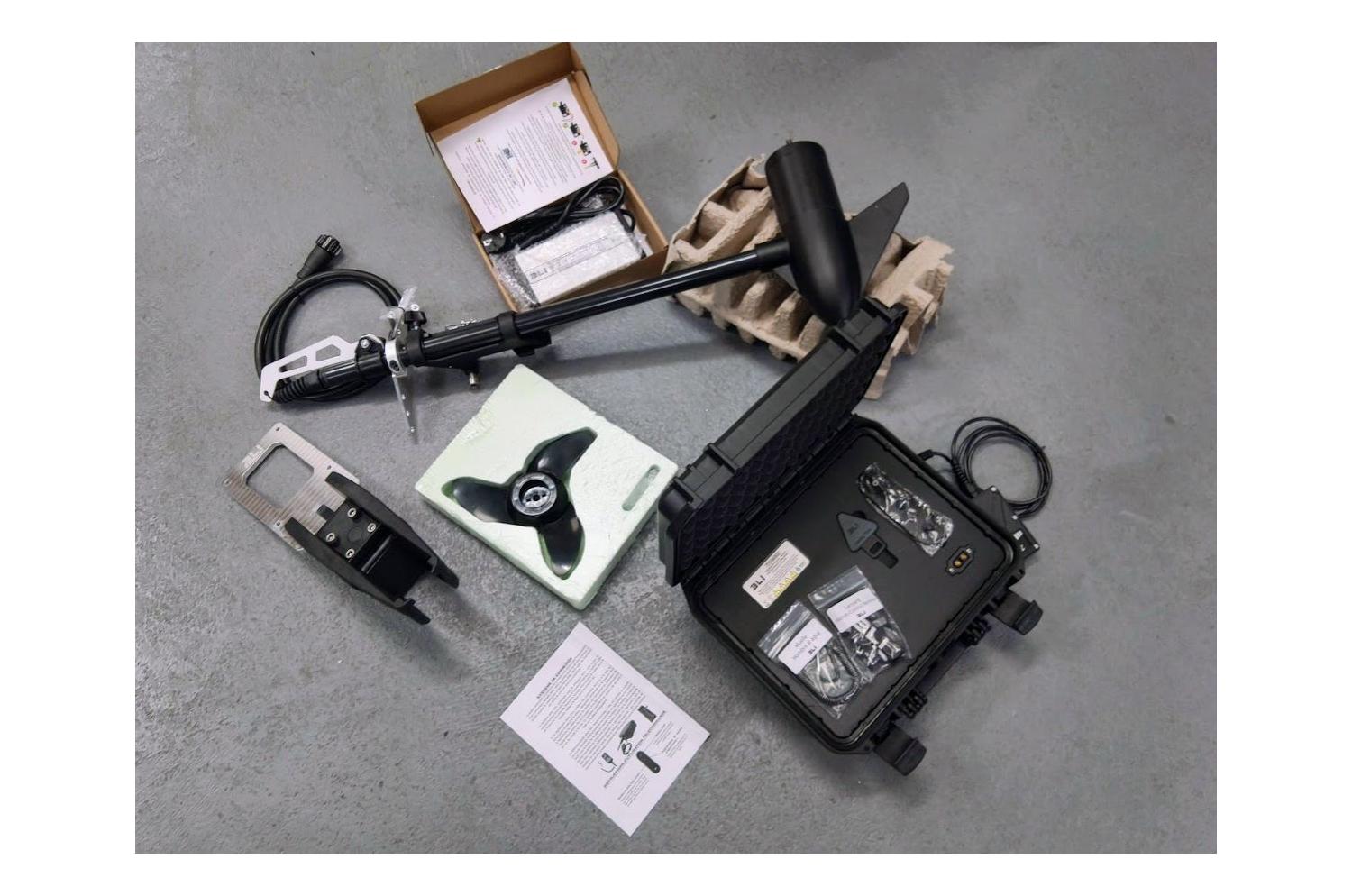 COMPLETE PACK Motor, remote control, bracket, case, circuit breaker, safety key, battery in waterproof case, charger and fixing kit included. Compatible for easy rear mounting of Alboran FX2, FX3, Alboran Hv9, Wildcat FX 2024, Supernova FX, with torqeedo ready inserts.