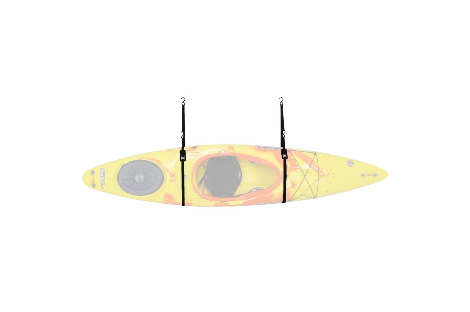 - Tough, adjustable nylon straps suspend your kayak securely out of the way.