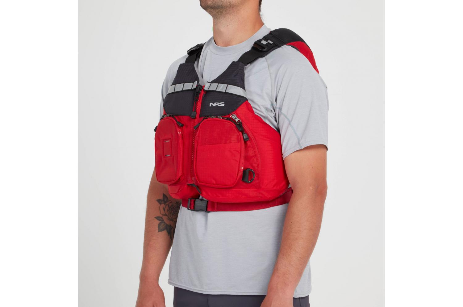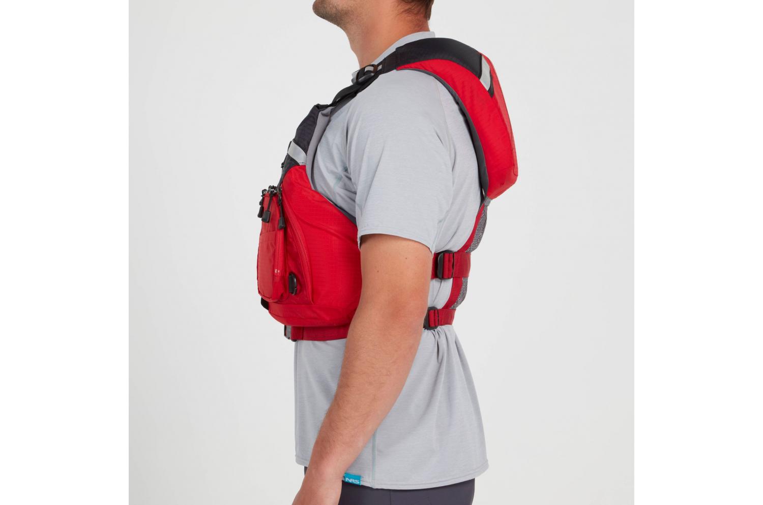 - La fermeture à glissière YKK® ainsi que les réglages au niveau des épaules, des côtés et de la taille maintiennent le gilet de sauvetage en place et offrent un ajustement sur mesure.