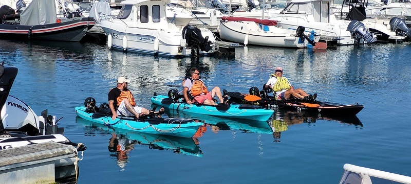Propulsion: pédalier hélice av/ar, pagaie, motorisation arrière ( option) et bientôt, motorisation puits ( option)