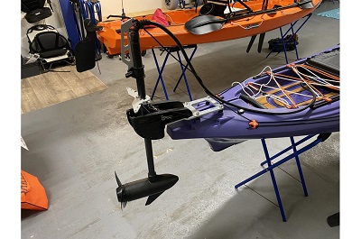 L'option motorisation arrière est également possible, l'Alboran dispose de série d'inserts moulés dans la coque pour recevoir une plaque adaptée au moteur choisi. Galaxykayaks propose les moteurs 3Li et Torqeedo.
