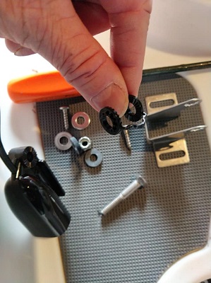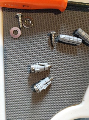 Pour trouver la bonne position avec ce modèle, j'ai confectionné 2 cales à l'aide de chevilles plastiques, coupées à la bonne taille