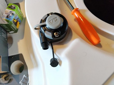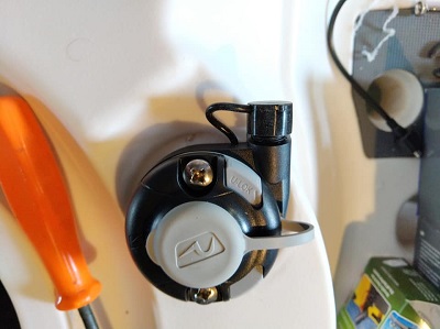 Après avoir passé le câble dans l'autovideur correspondant ( par dessous) vous allez pouvoir monter l'étrier porte sonde à l'aide des vis de fixation, le puits de sonde est muni de 2 inserts moulés