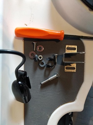 Mettre des fiches sur les 2 fils d'alimentation sous le starport, suivant votre type de batterie, ne pas oublier le porte fusible et le fusible (3 AMP) sur le + ( fil rouge) , mettre la batterie, brancher sur le starport, faire un essai , ça s'allume, c'est bon .....