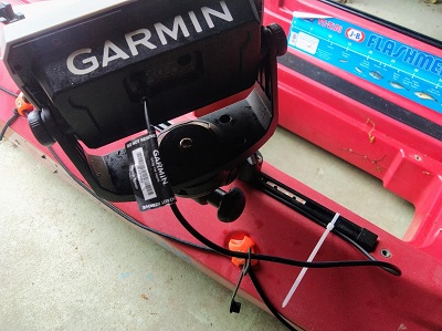 Pour l'écran, j'ai utilisé un Garmin Fishfinder mount R-Lock Railblaza, cet accessoires fait l'objet d'un autre tuto sur le blog: