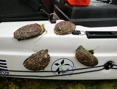 Comme les grandes marées sont de retour et que l'autorisation de cueillette d'ormeaux est de nouveau permise, on ne s'est pas privé, première sortie coquillage avec le Wahoo S Série