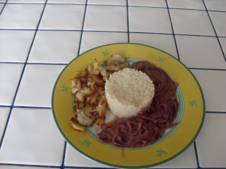 Dans la recette d'origine il mettent des salicornes en accompagnement, je préfère servir avec un riz et mettre un peu plus d'échalottes de roscoff
