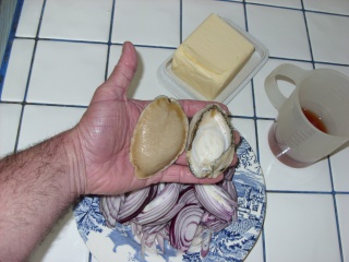 Séparer les ormeaux de leur coquille, nettoyer, laver et les rinçer abondamment. ( comme dans toutes le recettes d'ormeaux, je les laisse, avant, dégorger 2 jours dans le bas du frigo, en vidant l'eau qu'ils rendent de temps en temps)