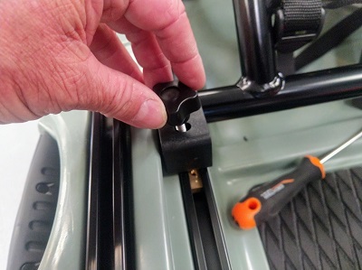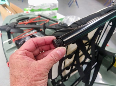 Retirer le siège du plastique de protection, retirer les bouchons de tubes et monter le siège sur ses rails grâce aux fixations fournies