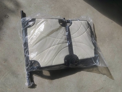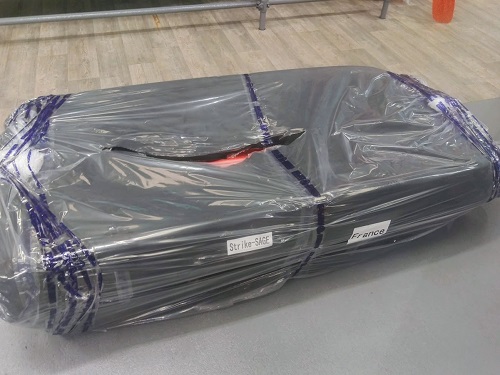 Il est protégé dans une toile type feutrine noire, le siège et la pagaie sont aussi avec
