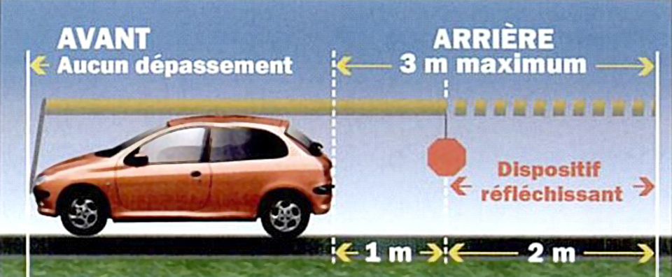 Si le chargement dépasse le véhicule, il faut impérativement respecter les contraintes suivantes :